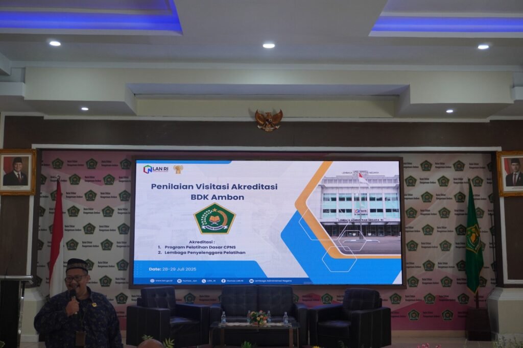 Ambon, Selasa 29 Juli 2025– Balai Diklat Keagamaan (BDK) Ambon kembali menegaskan komitmennya dalam menjaga dan meningkatkan kualitas layanan pelatihan melalui pelaksanaan Visitasi Akreditasi oleh Lembaga Administrasi Negara (LAN) Republik Indonesia.