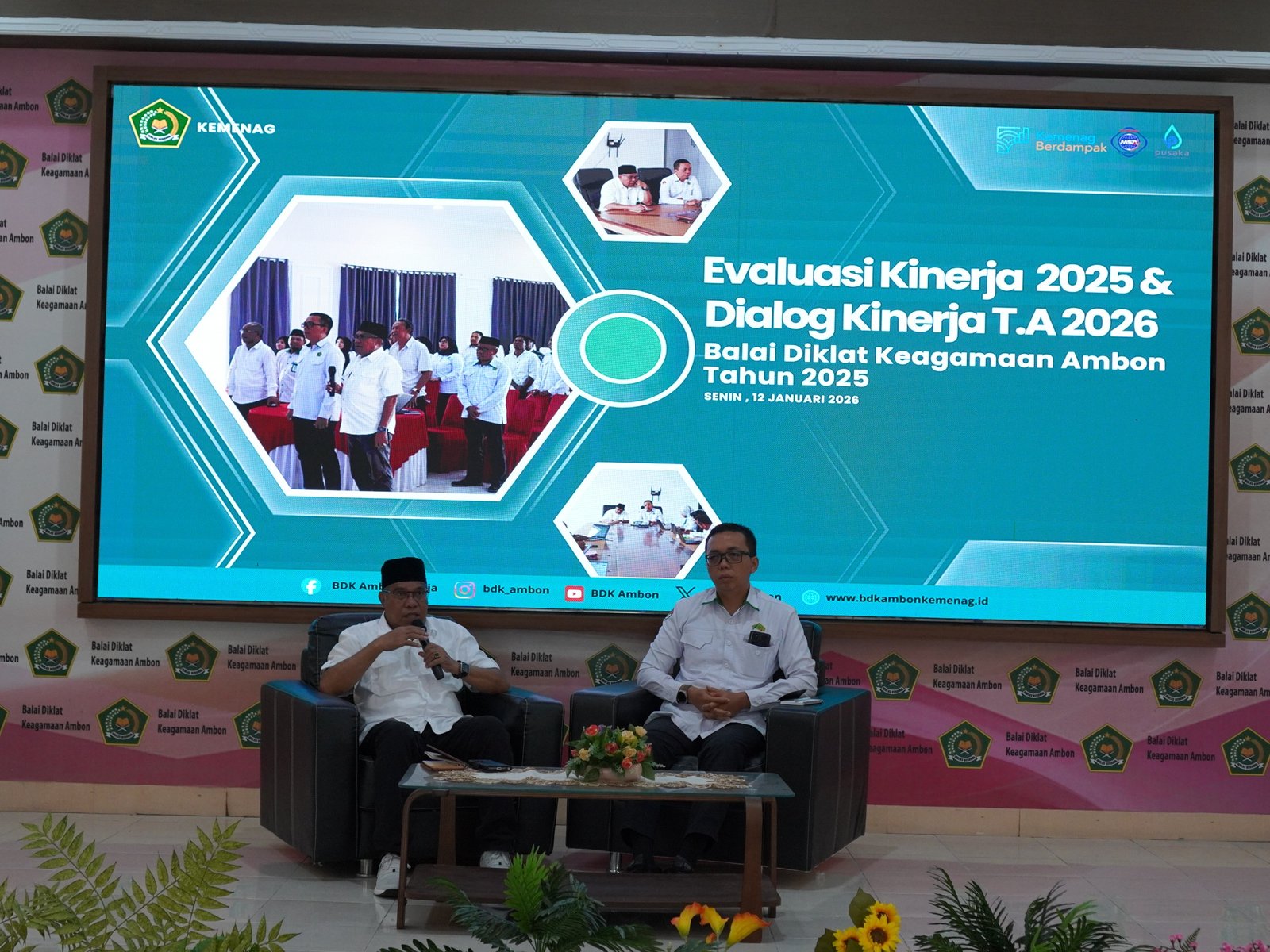 Ambon, 12 Januari 2026,  Mengawali tahun kerja 2026 dengan semangat perbaikan berkelanjutan, Balai Diklat Keagamaan (BDK) Ambon menggelar Rapat Evaluasi Kinerja Pegawai Tahun 2025 dan Dialog Kinerja Tahun Anggaran 2026 . Kegiatan berlangsung di Aula BDK Ambon dan diikuti oleh seluruh pegawai sebagai bagian dari upaya penguatan kinerja organisasi secara menyeluruh.